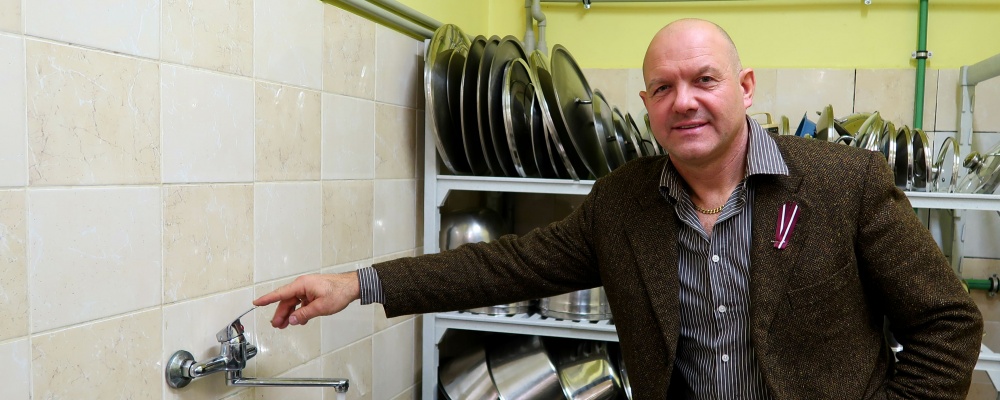 “Nepieciešamība pēc siltā ūdens ierīkošanas virtuvē bija, jo darbdienās ēdināšana skolā tiek organizēta trīs maiņās, kopumā paēdinot ap 700 cilvēku. Ar esošajiem elektriskajiem boileriem jeb ūdens sildītājiem nepietika, lai nodrošinātu karsto ūdeni katlu, pannu un citu lielo trauku mazgāšanai. Tā kā skolu apkurina “Kuldīgas siltumtīkli”, tad nolēmām uzrunāt uzņēmumu arī par siltā ūdens ievilkšanu virtuvē,” stāsta Kuldīgas Centra vidusskolas direktores vietnieks saimnieciskajā jomā Aldis Šternbergs.