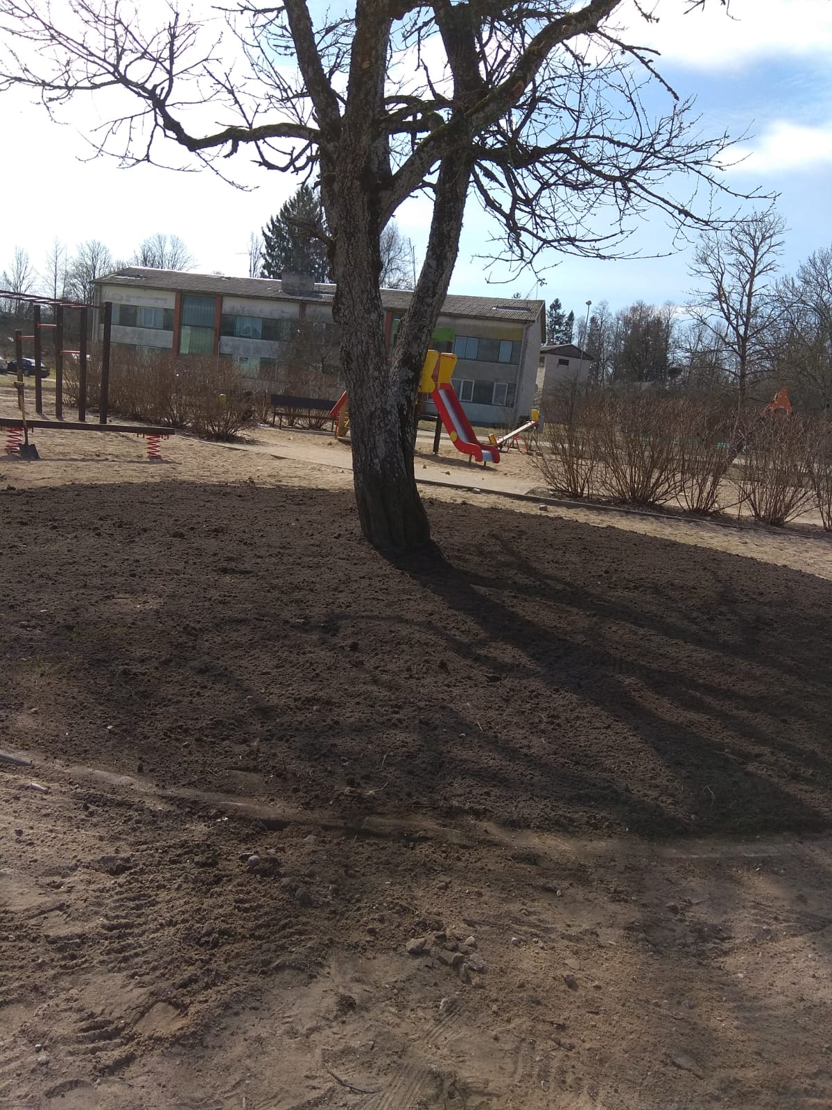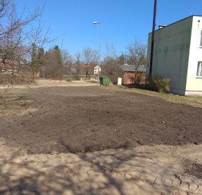 Tika atvesta melnzeme un nolīdzināta trases būvniecības vieta, kā arī iesēta zālīte.